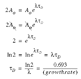 It allows us to relate the growth rate (represented by the greek letter 'lambda' here) to another important quantity known as the doubling time (represented by Tau sub-D)